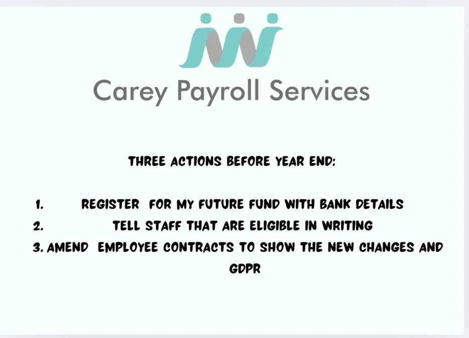 From 1st January 2026, Auto enrolment (My Future Fund) will apply to some staff. This is a mandatory scheme and once an employee qualifies, they will be automatically enrolled in the scheme.
